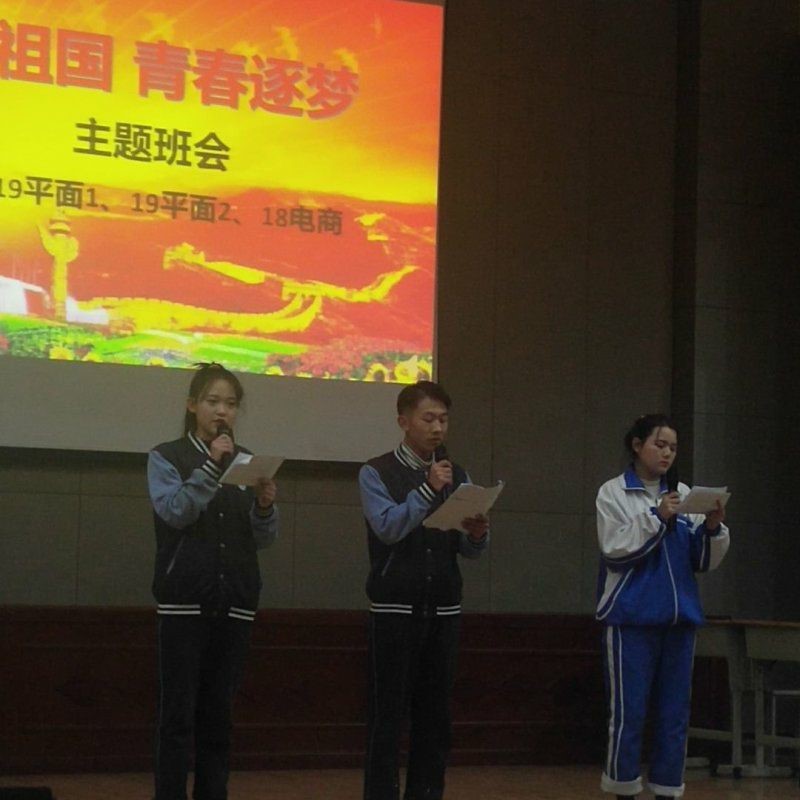 此次主题班会筹办前期,公教部学生科高度重视,曹元峰主任召开班主任专题会部署主题班会工作。最终19平面1班、18电商班、19平面2班推陈出新,打造全新主题班会组合模式,三个班级选出优秀学生资源,紧扣“歌唱祖国、青春逐梦”主题,展演出节目内容充实,形式多样,激发学生爱国热情和奋斗精神的主题班会。
