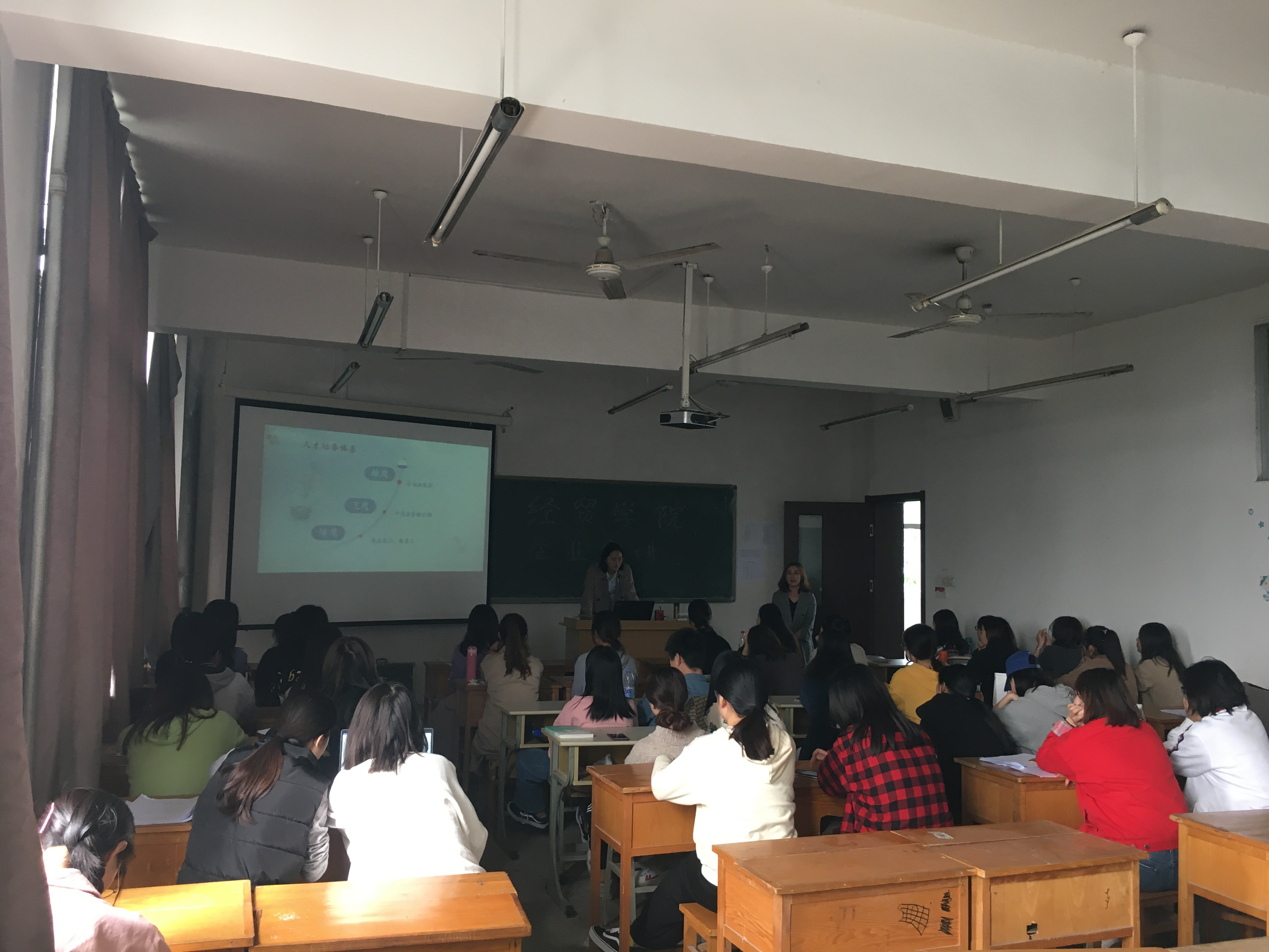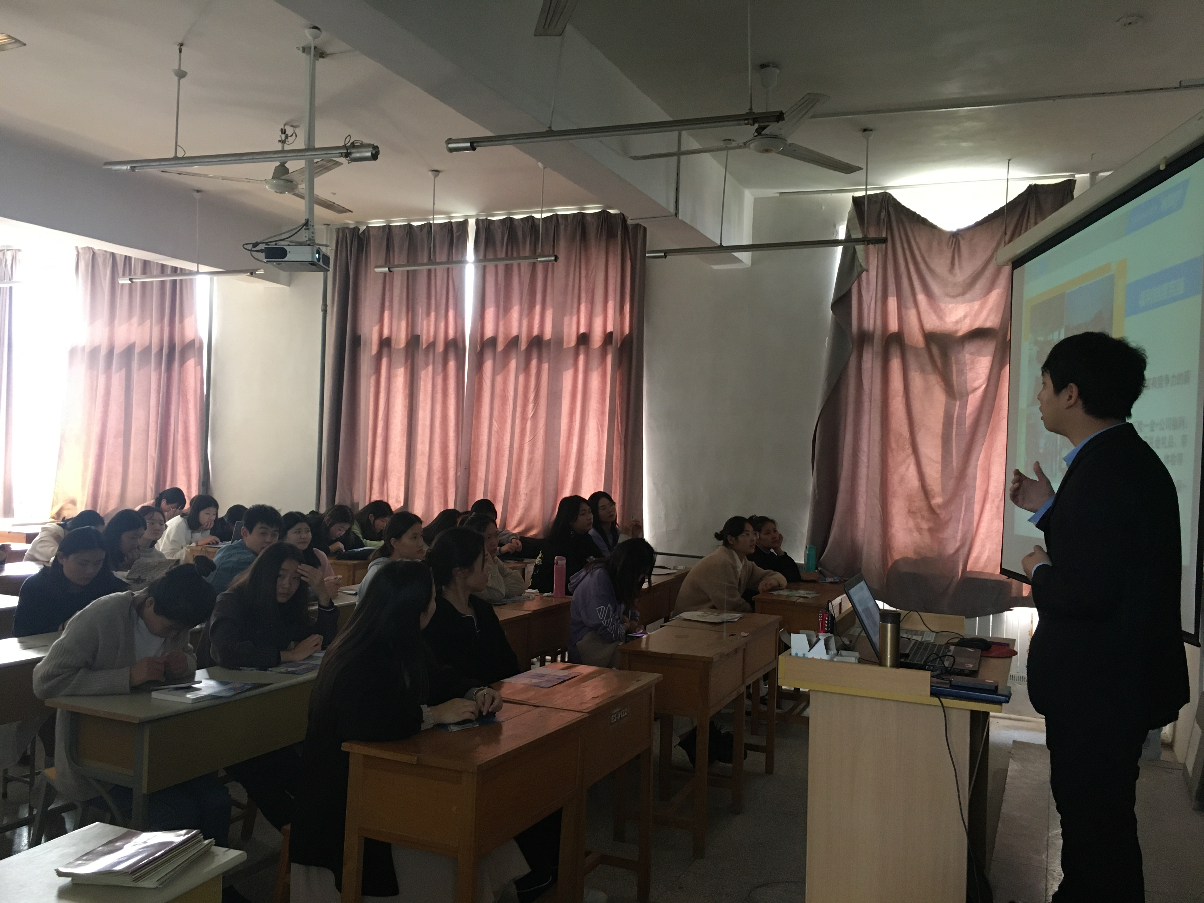 来自苏宁物流中心的秦经理以及勤善堂集团的HR吕主管分别对各自单位进行了详细介绍,让毕业生对实习、就业岗位工作要求、薪酬待遇、培训安排、职业规划等都有了初步认识,并且对自己未来发展前景也有所启发。