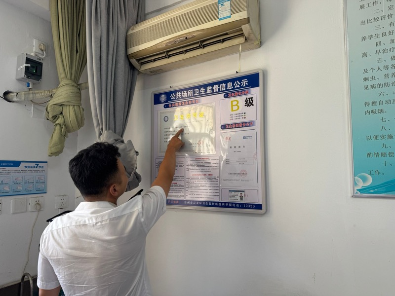 市所两位卫生监督员在监督检查的同时还向我校进行了卫生法律法规的普法宣传并发放了相关内容的宣传海报、宣传手册等。下一步,我校将将持续加强学校卫生工作,力争筑牢校园健康防护网,为同学们营造更加安全、健康的成长环境。